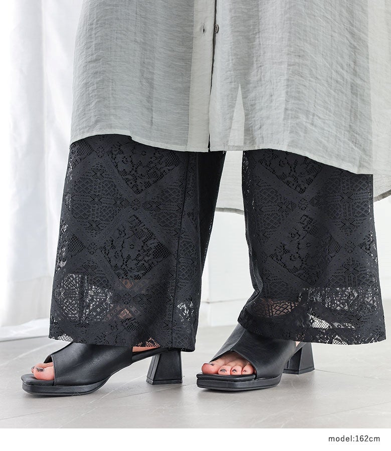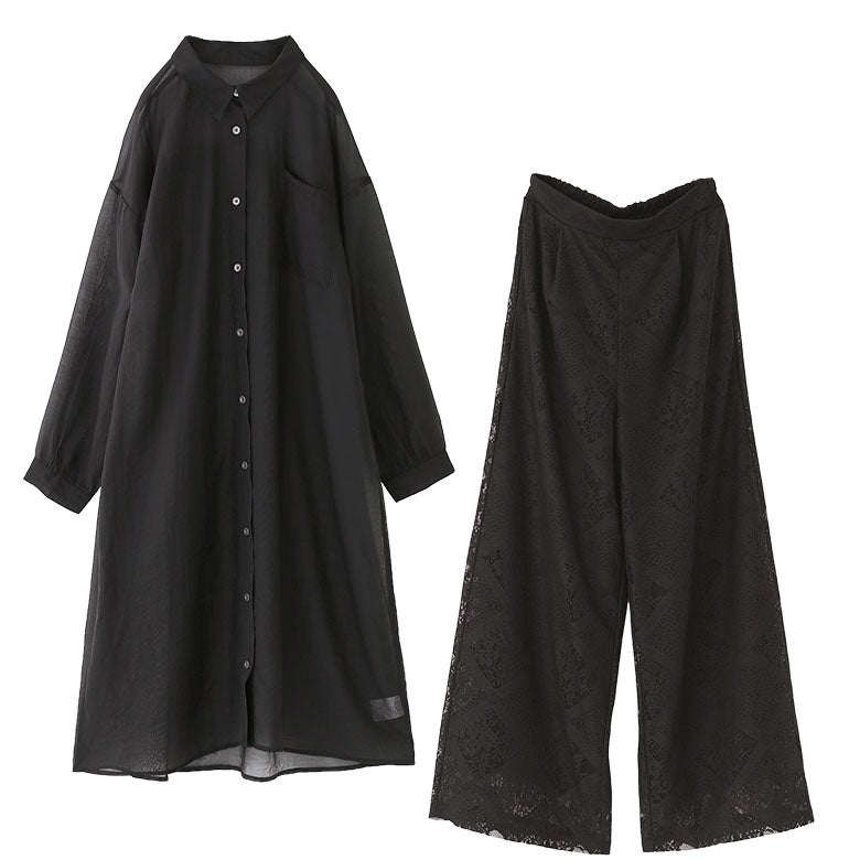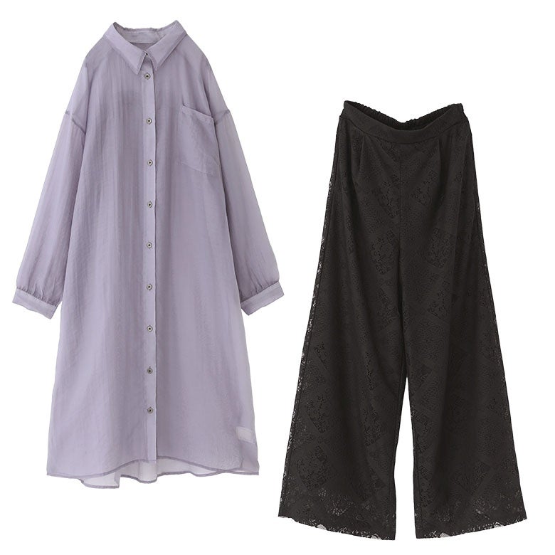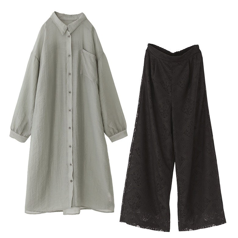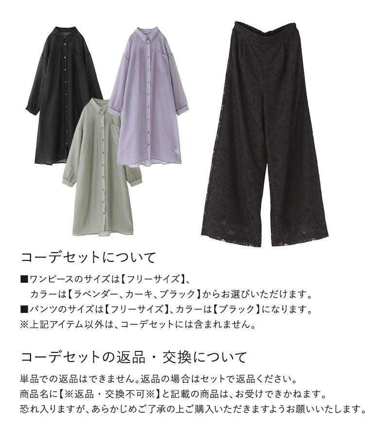 『ブロックレースパンツ×バックギャザーシアーシャツワンピースコーデ2点SET』