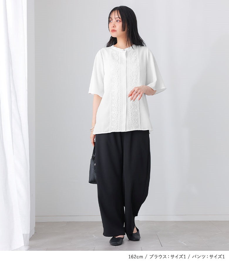 『冷感フレアスリーブレースブラウス×カーブツイルパンツコーデ2点SET』