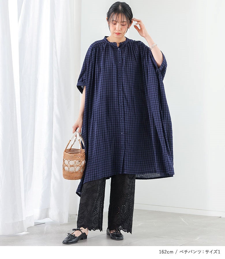 『裾スカラップレースペチパンツ×ギンガムチェック5分袖ワンピースコーデ2点SET』