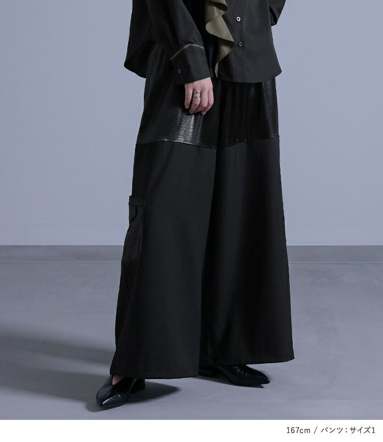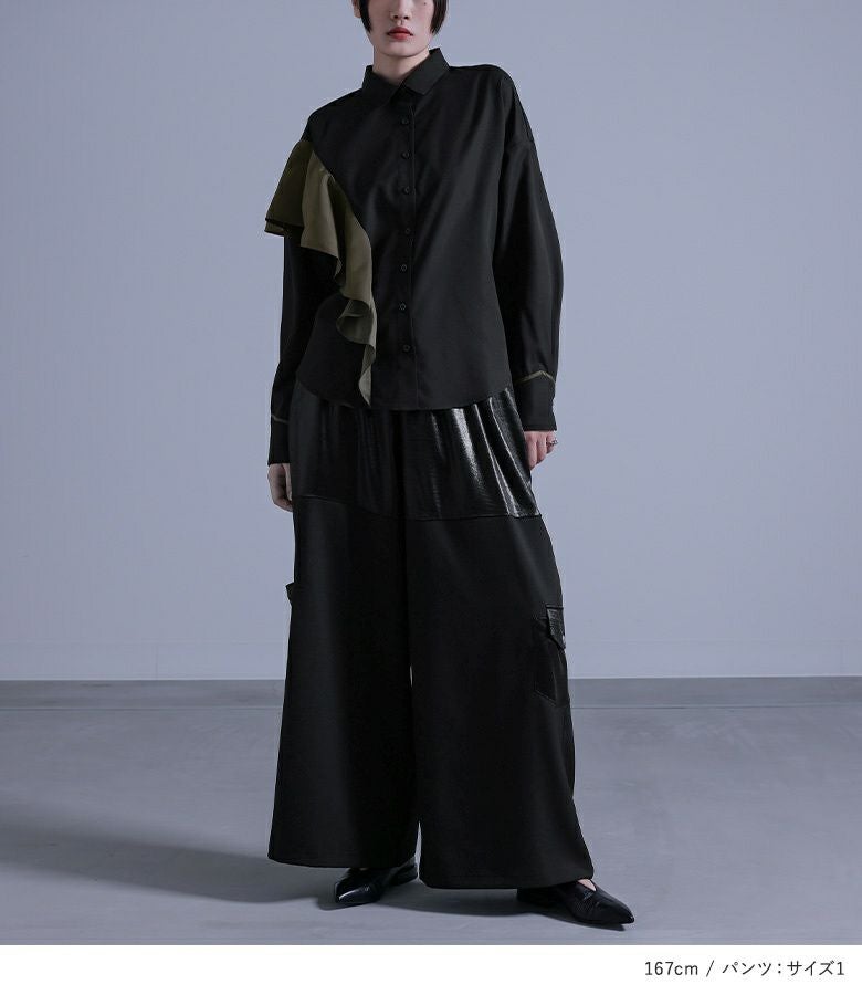 『フリルデザインシャツ×異素材デザインワイドパンツコーデ2点SET』