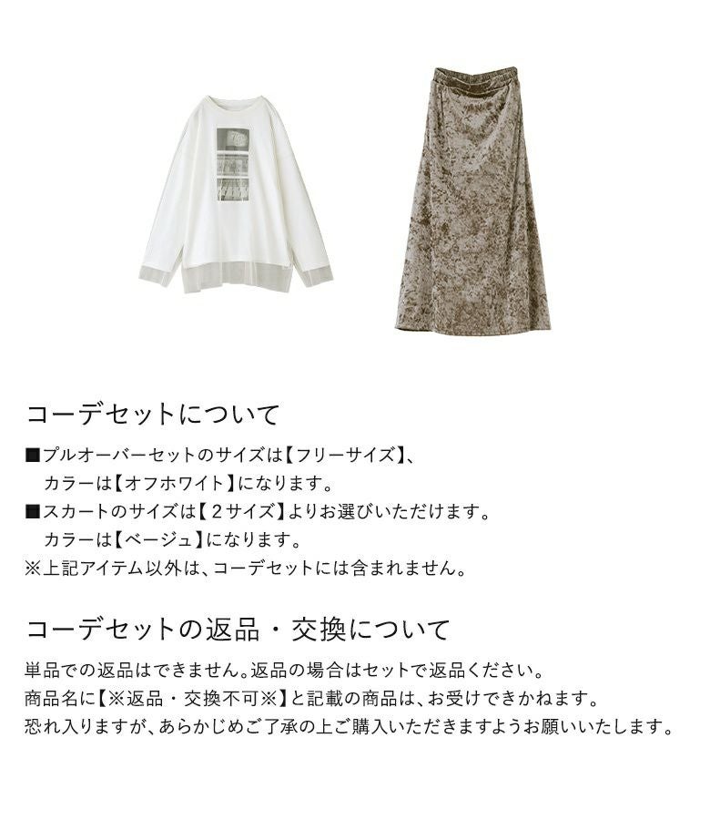 【送料無料】『フォトプリントロンT&チュールプルオーバーセット×クラッシュベロアセミフレアスカートコーデ2点SET』