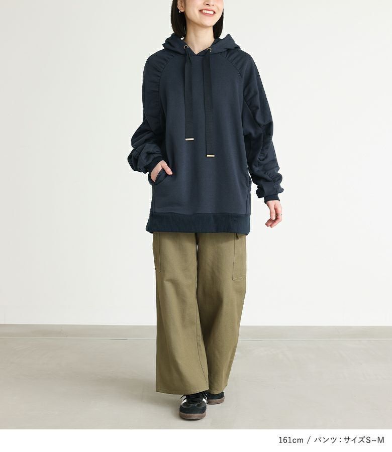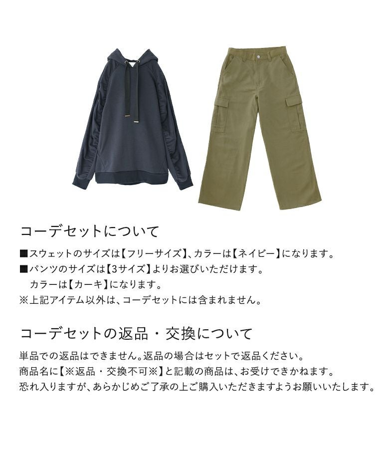 4. 【送料無料】『袖ギャザーフードスウェット×ワイドカーゴパンツコーデ2点SET』【メール便不可】【50】