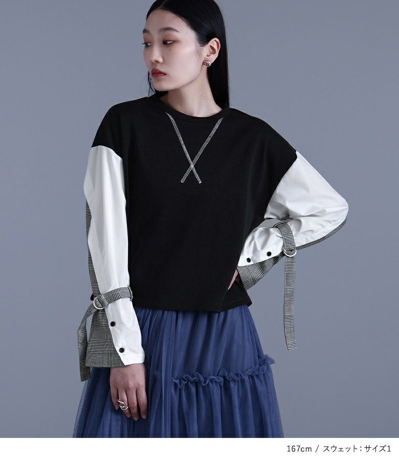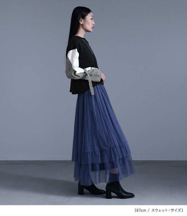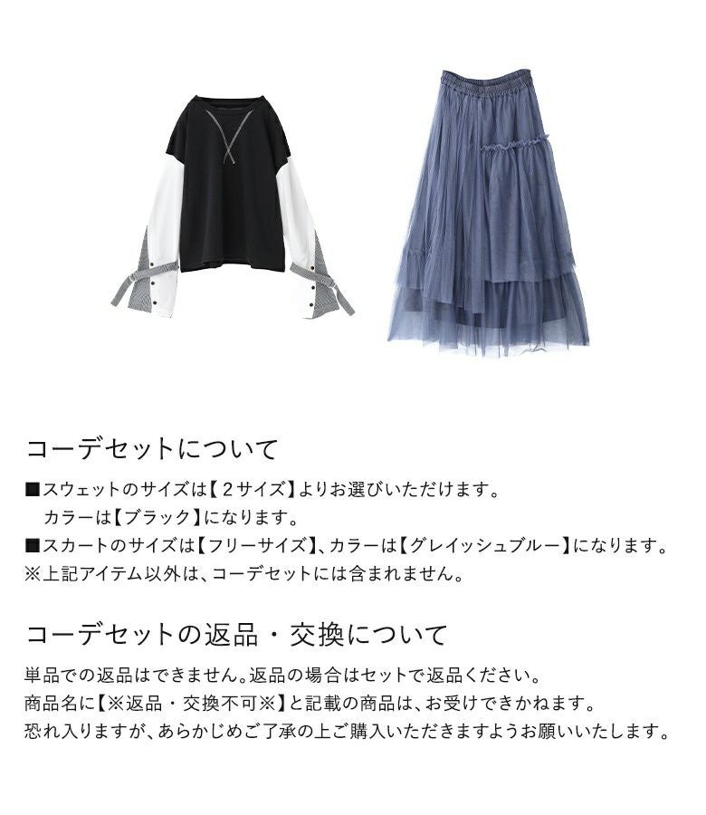 『袖異素材スウェット×プリーツデザインチュールスカートコーデ2点SET』