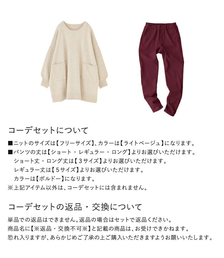 4. 『裏ベロアストレッチレギパン×ポケットデザインチュニックニットコーデ2点SET』【メール便不可】【40】