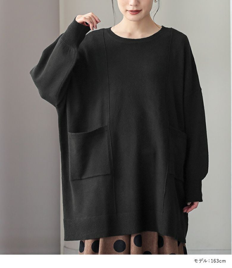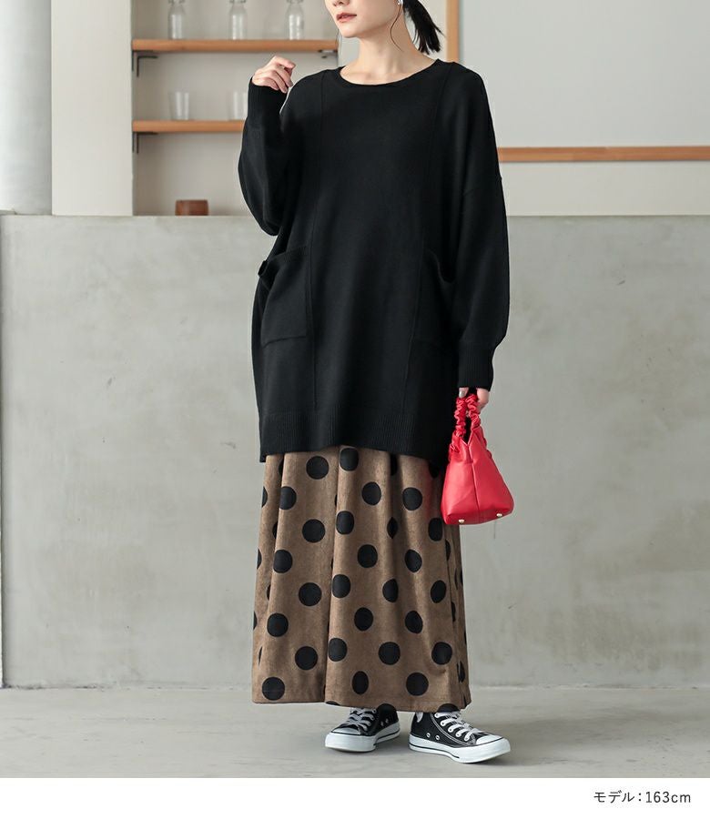 4. 【送料無料】『ポケットデザインチュニックニット×ドットコーデュロイワイドパンツコーデ2点SET』【メール便不可】【40】