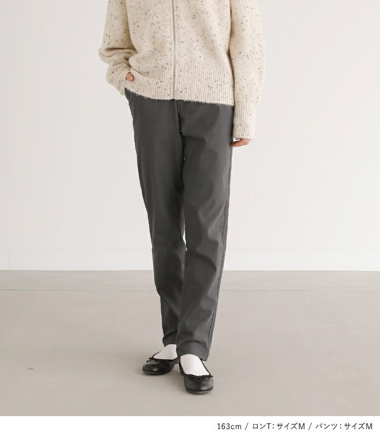 『ネップニットジップカーディガン×シンプルクルーネックロンT×NEWフレキシンボーイフレンドパンツコーデ3点SET』