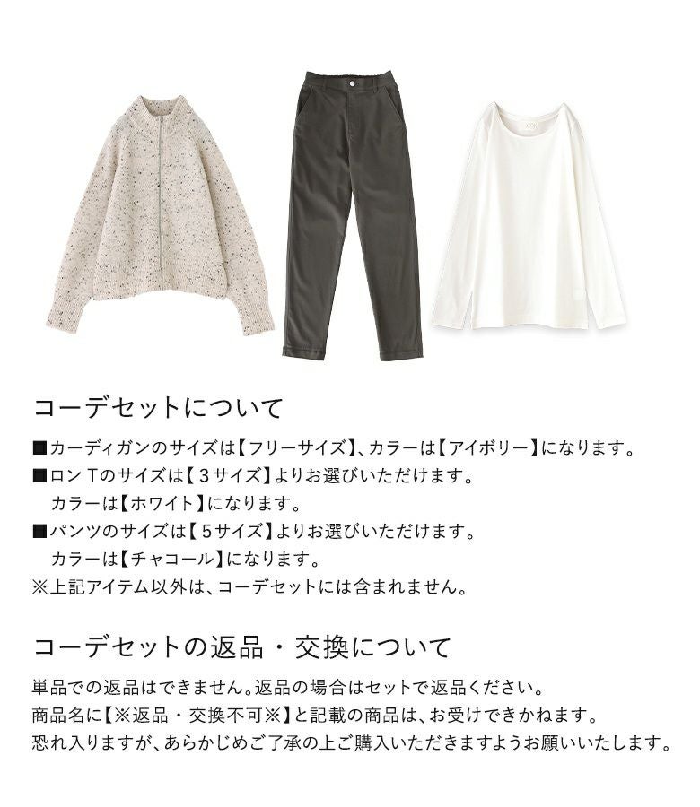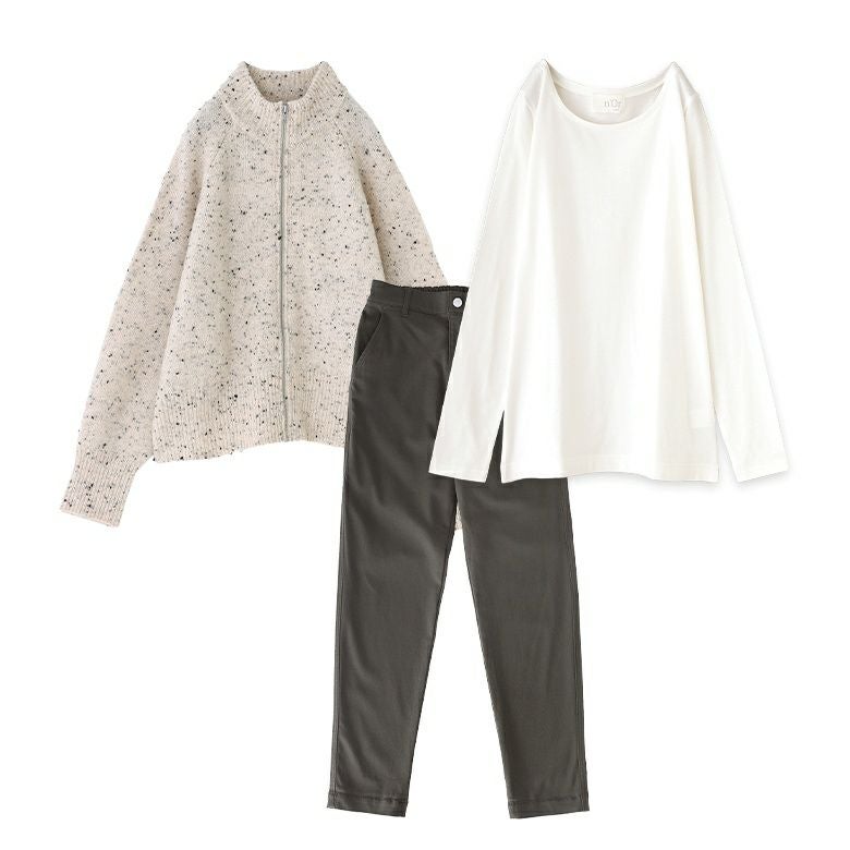 4. 『ネップニットジップカーディガン×シンプルクルーネックロンT×NEWフレキシンボーイフレンドパンツコーデ3点SET』【メール便不可】【45】