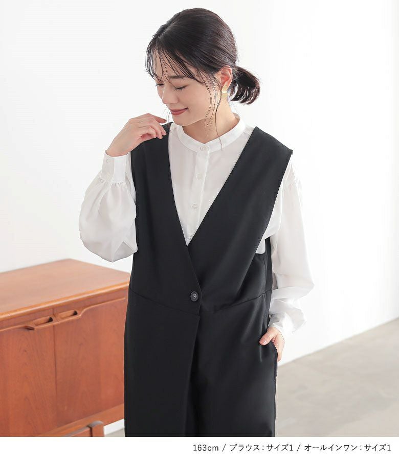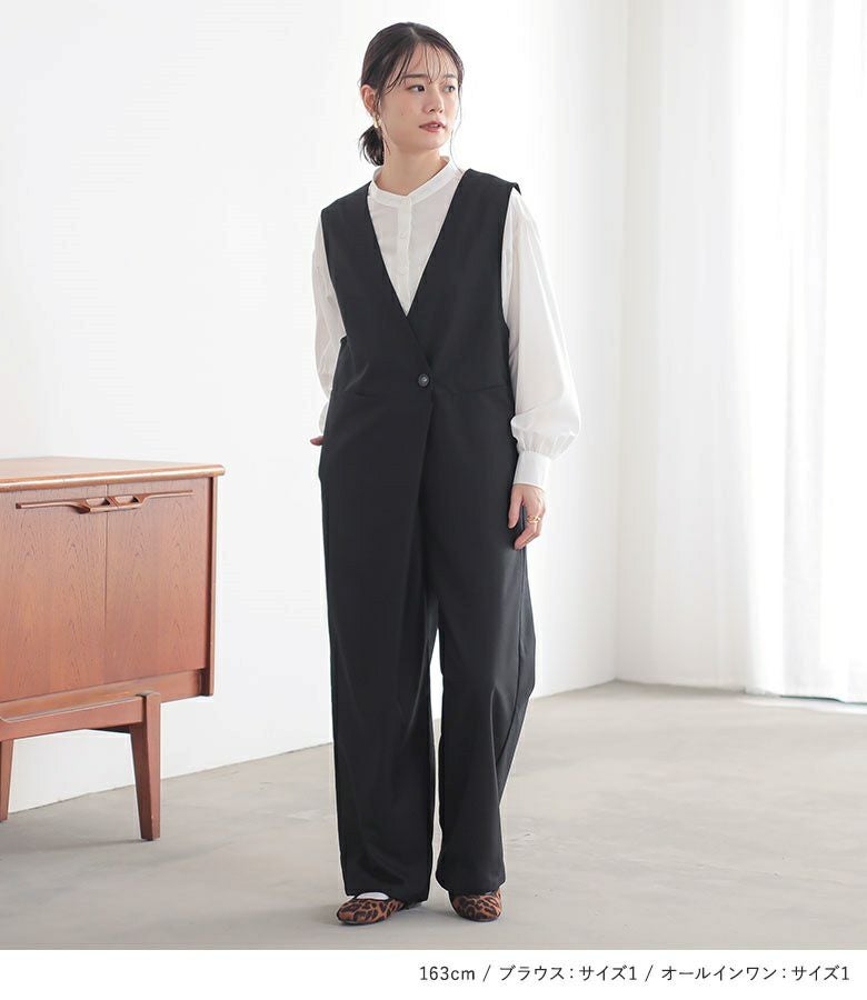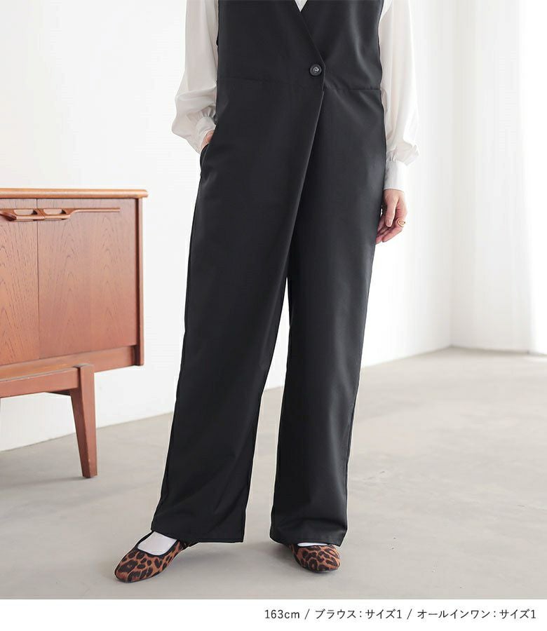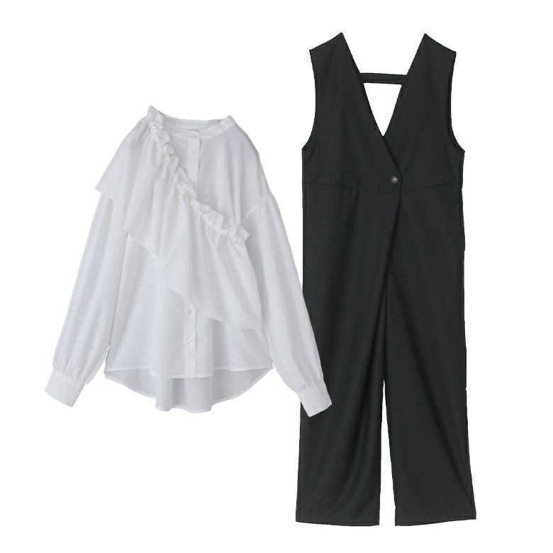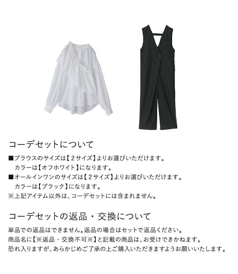 『フリル襟付きブラウス×ツイルオールインワンコーデ2点SET』