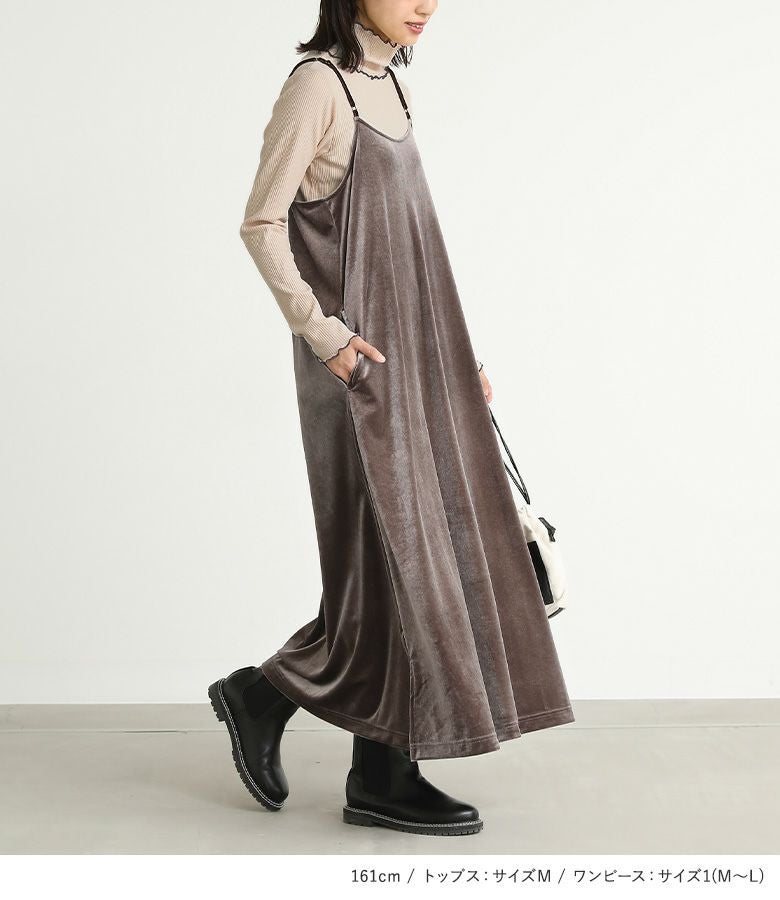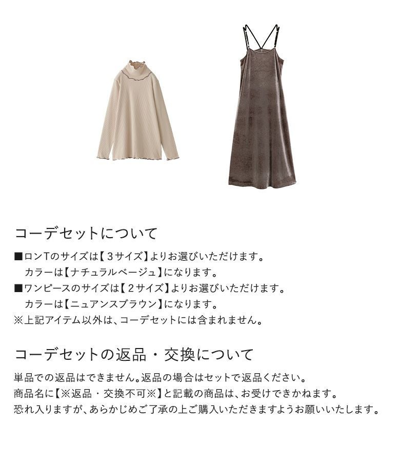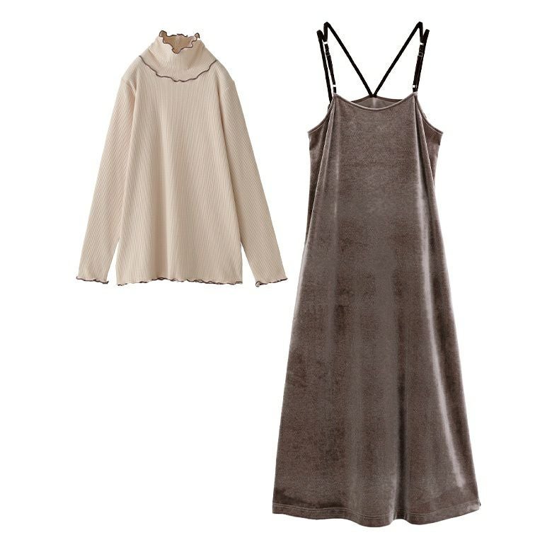 『メローリブタートルネックカットソー×ベロアキャミワンピースコーデ2点SET』