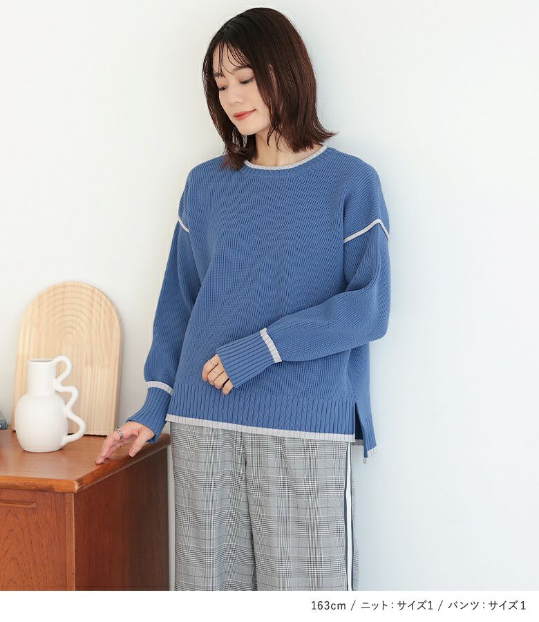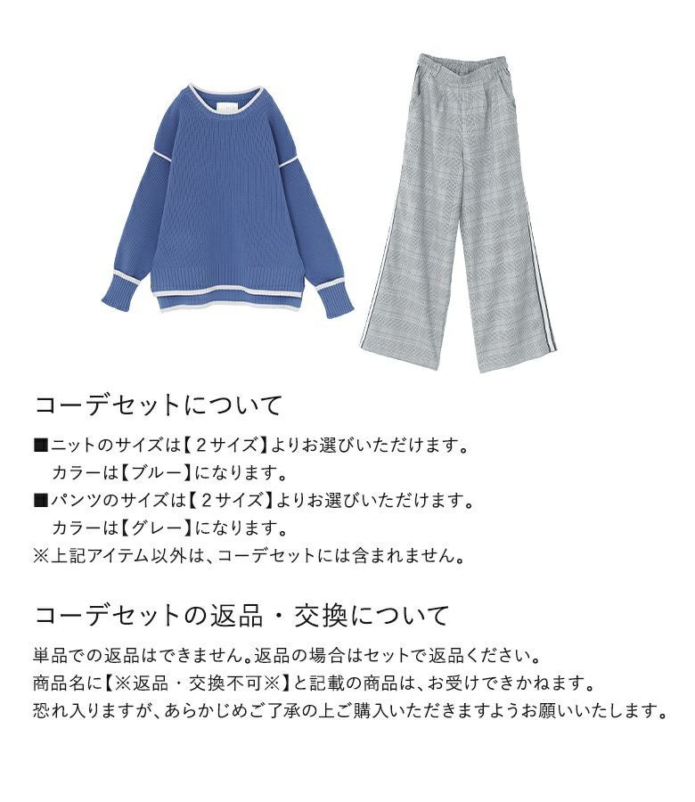 4. 【送料無料】『配色ラインスポンジニット×サイドラインチェックパンツコーデ2点SET』【メール便不可】【50】