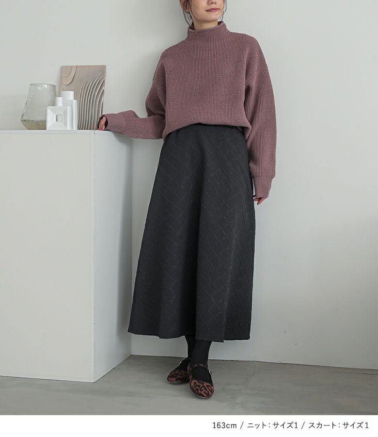 『ふくれジャカードフレアスカート×メランジハイネックニットコーデ2点SET』