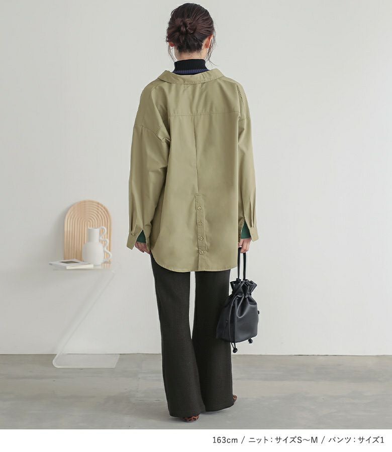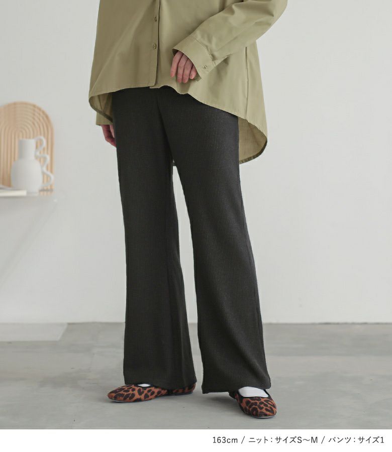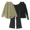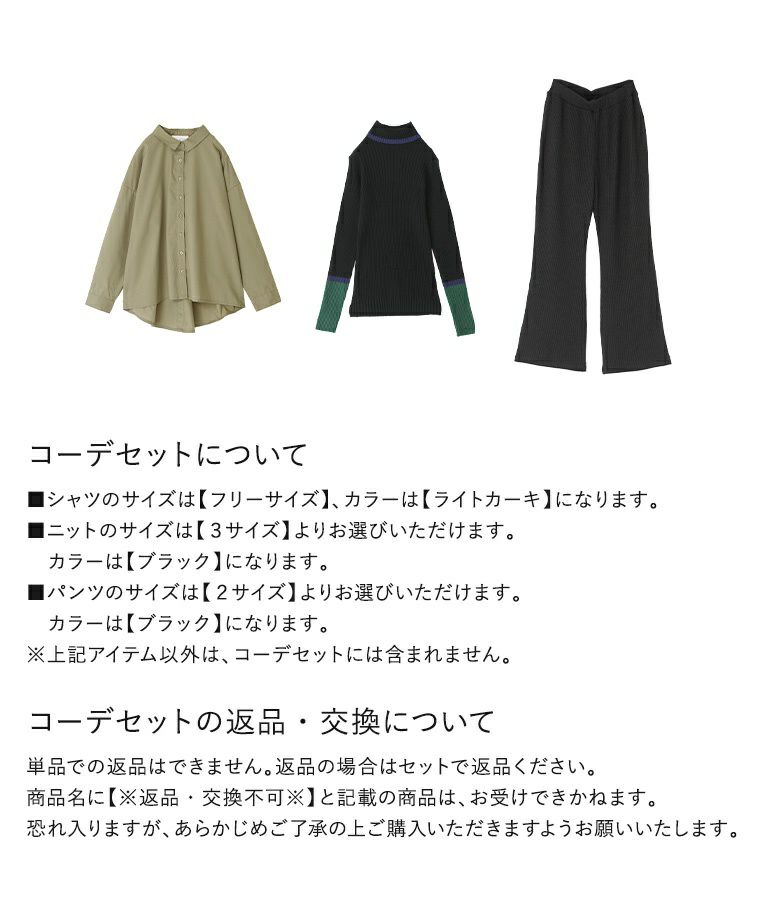 『ラメ入りリブフレアパンツ×配色リブニット×バックボタンスリットシャツコーデ3点SET』