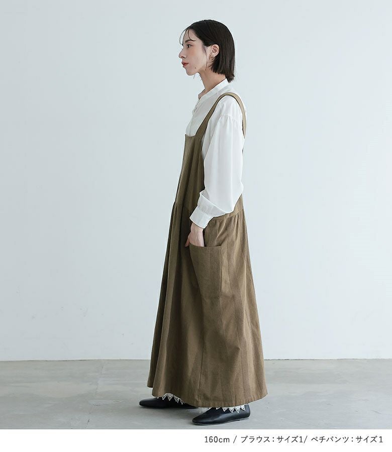 4. 【送料無料】『ストライプコーデュロイジャンスカ×フリル襟付きブラウス×裾レース裏起毛ペチパンツコーデ3点SET』【メール便不可】【40】