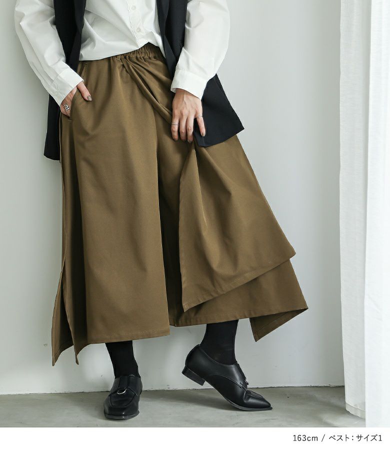 4. 【送料無料】『変形デザインガウチョパンツ×ツイルテーラードジレベスト×バックボタンスリットシャツコーデ3点SET』【メール便不可】【35】