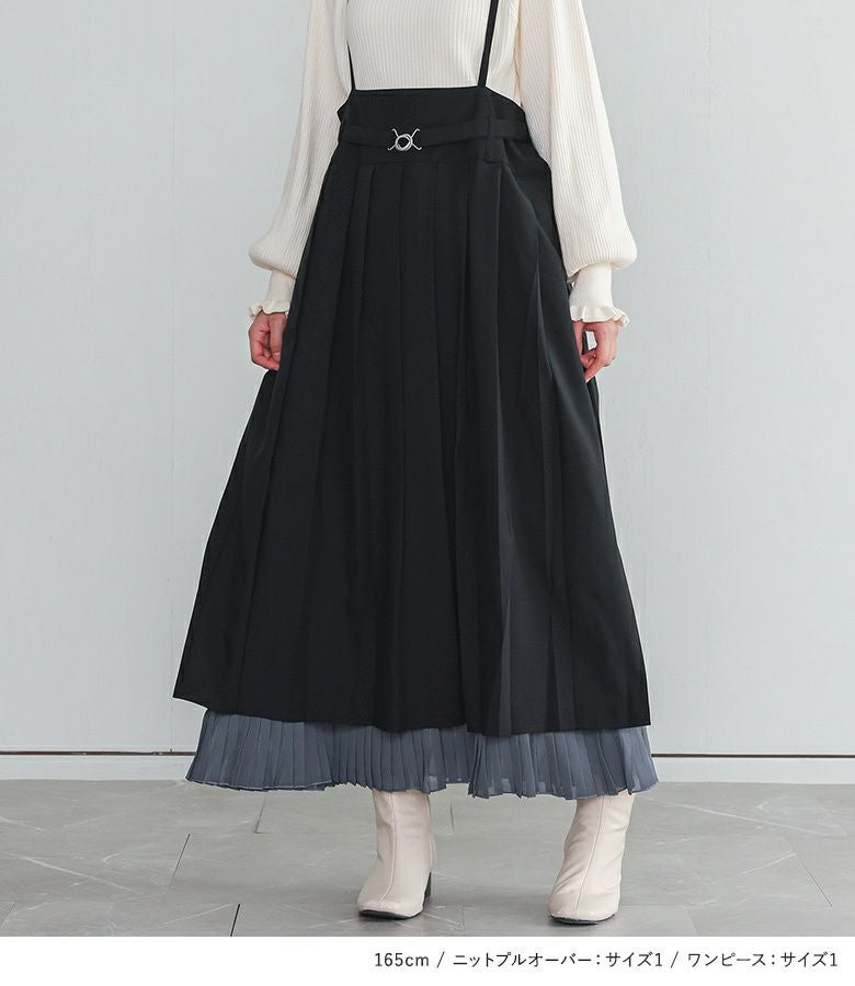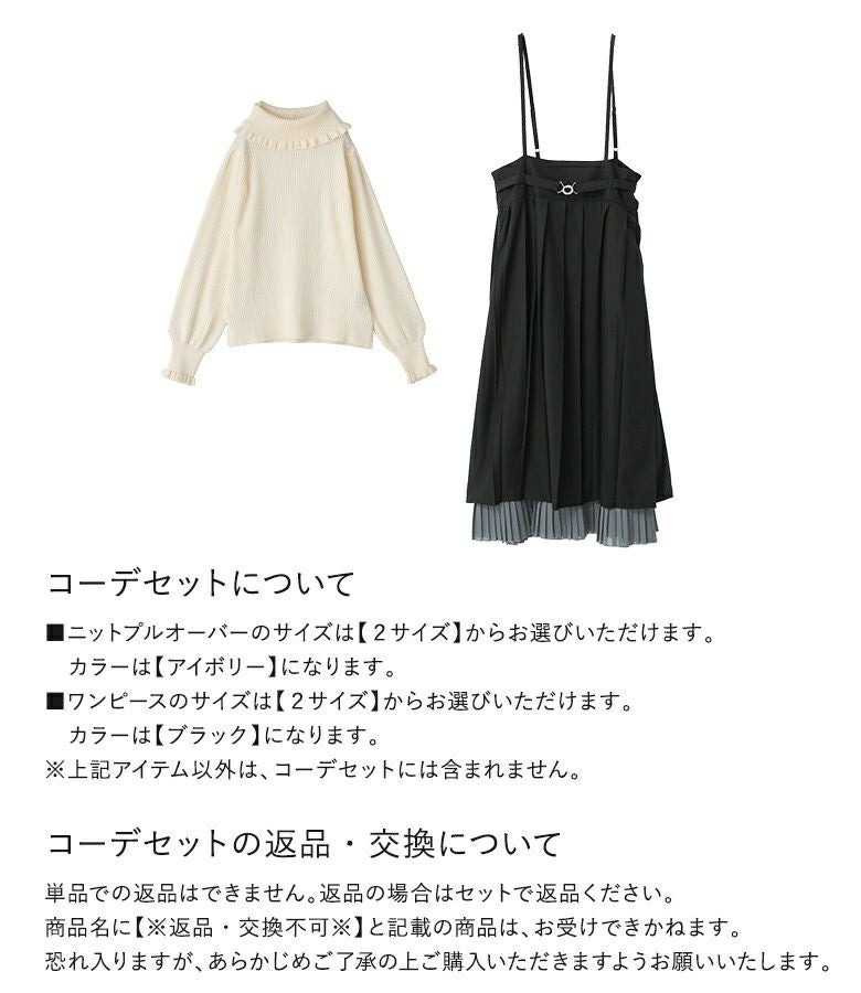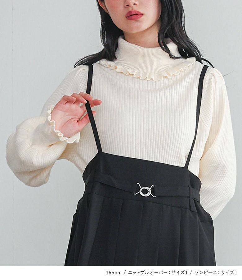 『プリーツキャミワンピース×フリルタートルネックニットプルオーバーコーデ2点SET』