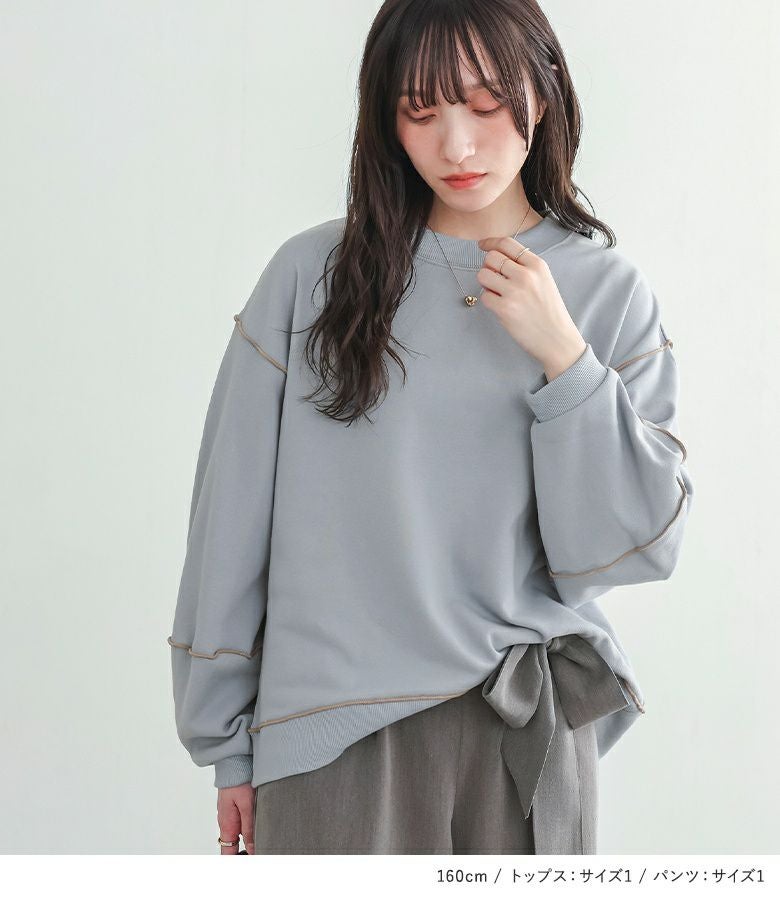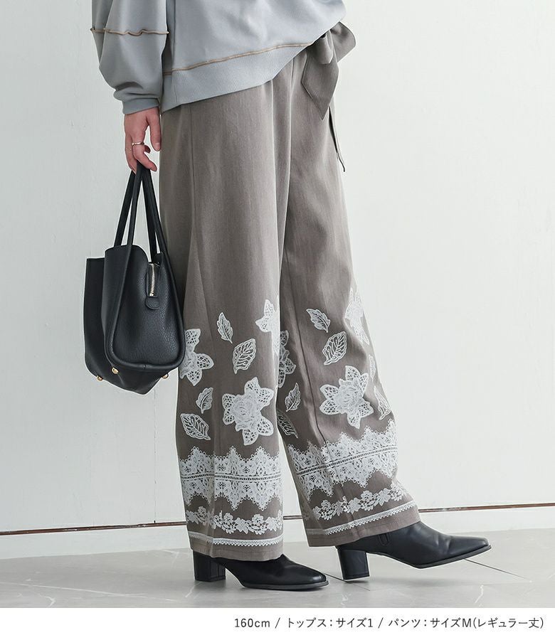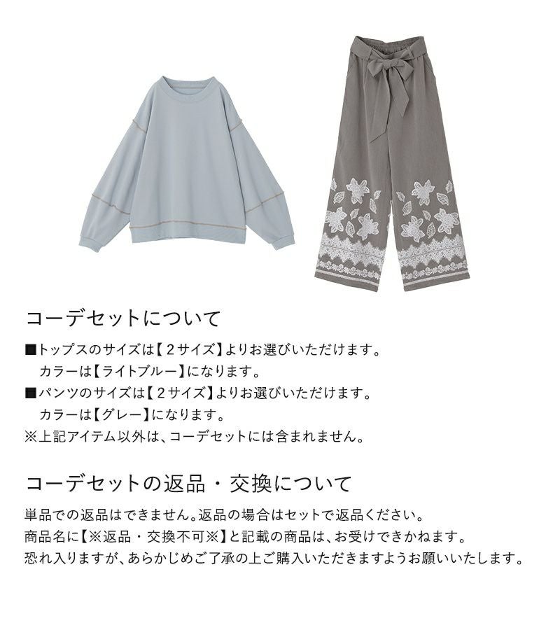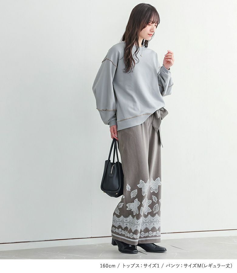 『裏毛メロウランタンスリーブプルオーバー×ウエストリボンレースプリントパンツコーデ2点SET』