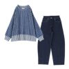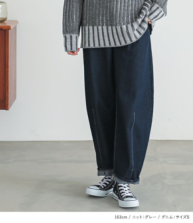 『二重臼配色リブ編みニット×カーブシルエットデニムコーデ2点SET』