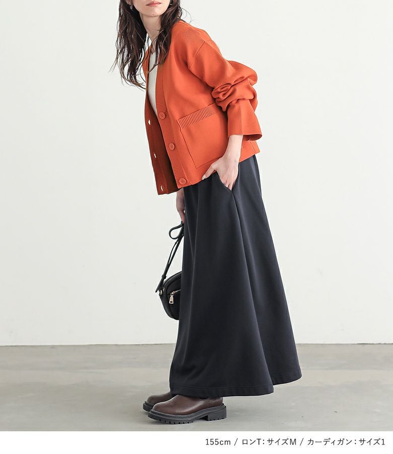 4. 【送料無料】『お洒落ラフロングスカート×吸湿発熱ラウンドネックロンT×スポンジニットショートカーディガンコーデ3点SET』【メール便不可】【65】