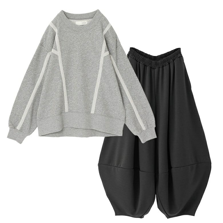 『裏毛テープデザインスウェット×ポンチコクーンパンツコーデ2点SET』
