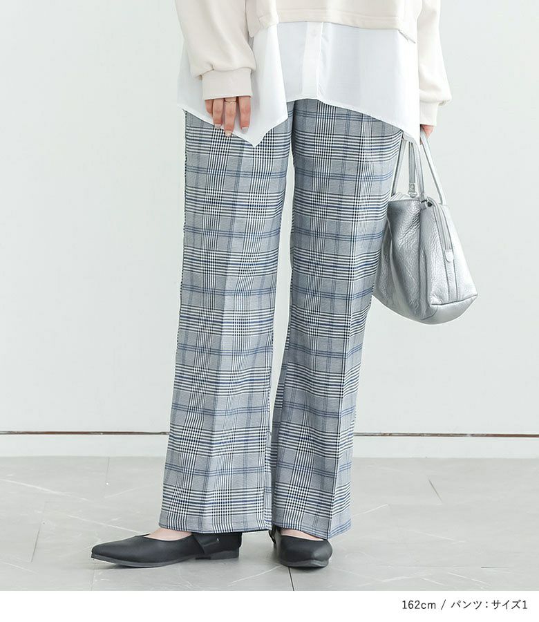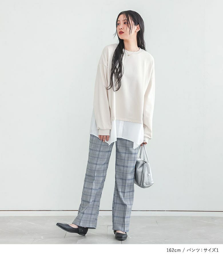 4. 『シャツドッキングスウェット×ストレートチェックパンツコーデ2点SET』【メール便不可】【50】