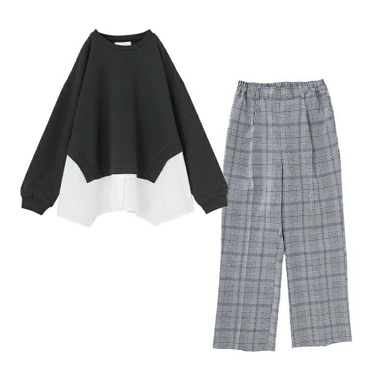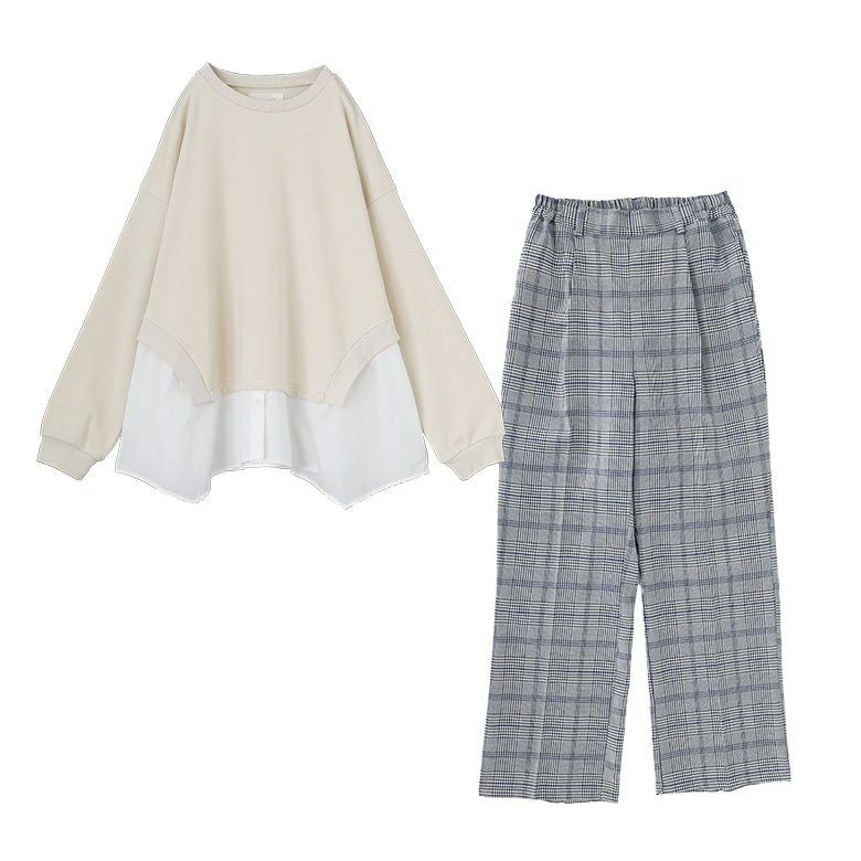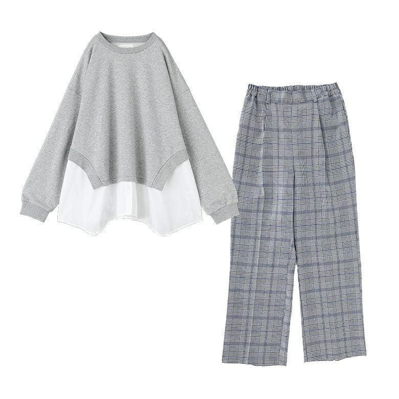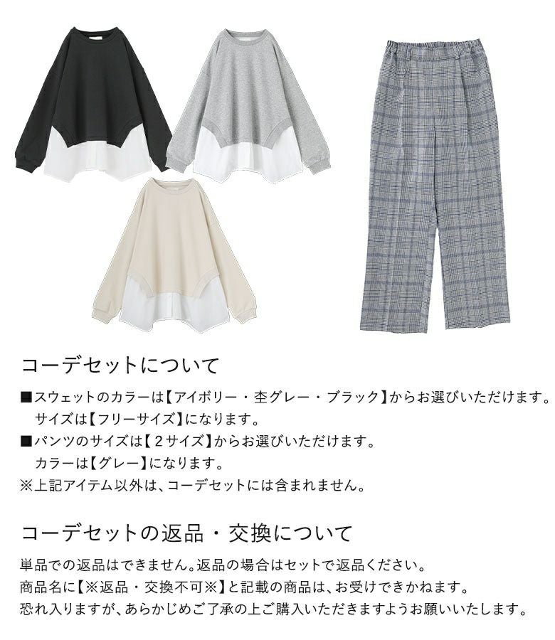 『シャツドッキングスウェット×ストレートチェックパンツコーデ2点SET』