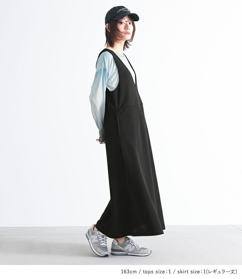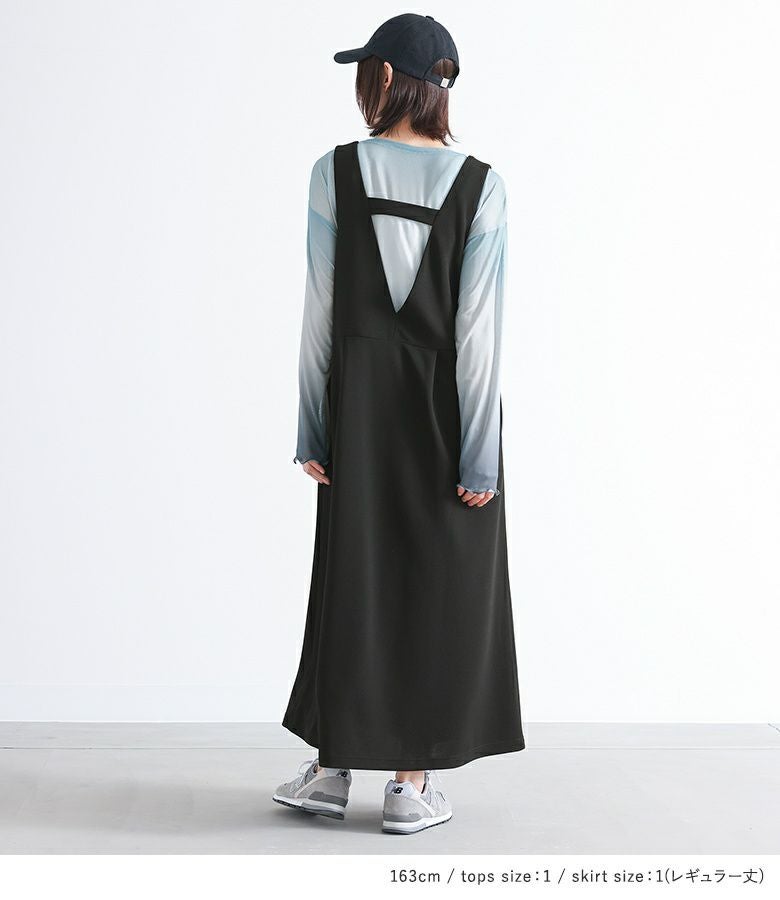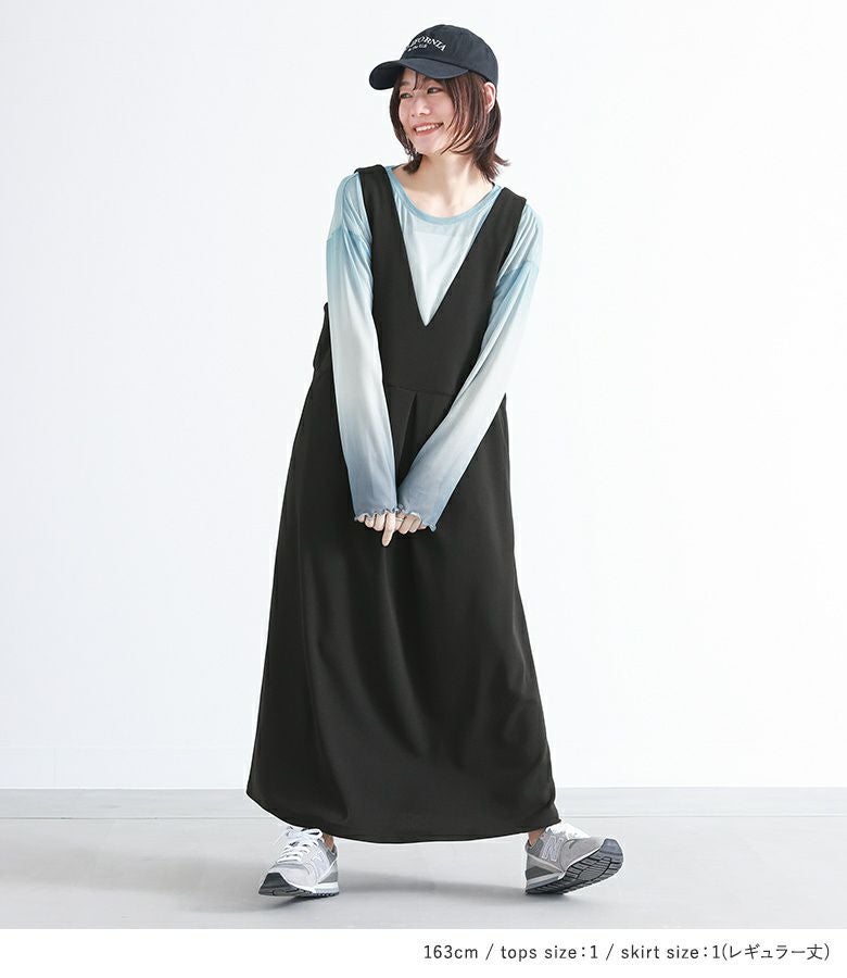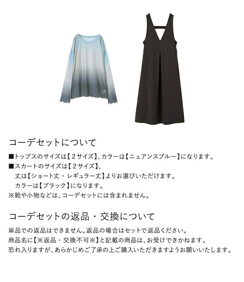 『グラデーションプリントトップス×ジャンパースカートコーデ2点SET』