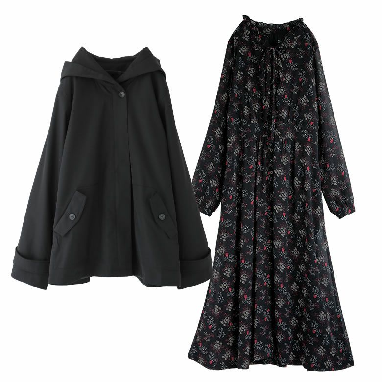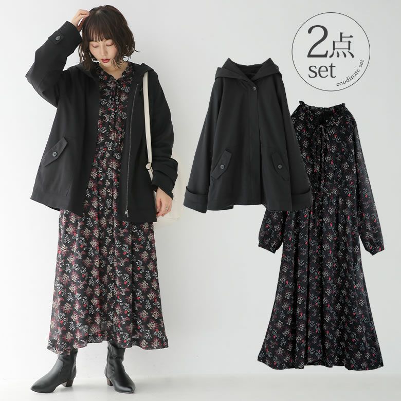 送料無料・数量限定★ブルゾン×花柄ワンピ2点コーデSET♪