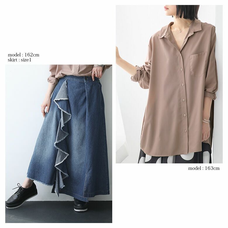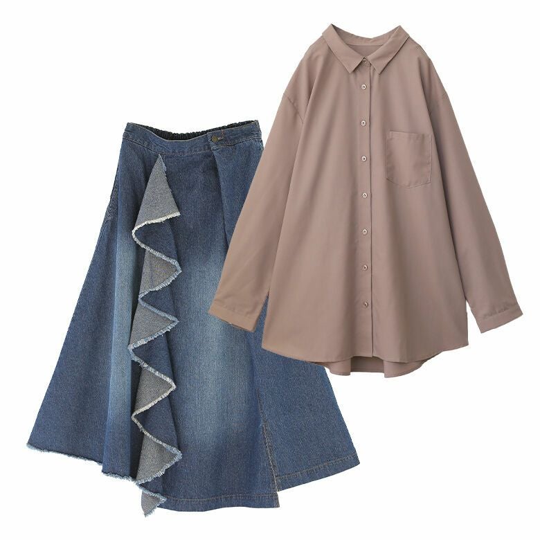 シンプルシャツ×デザインデニムスカート2点コーディネートSETです。