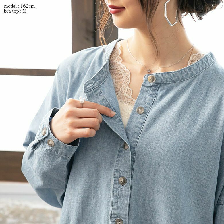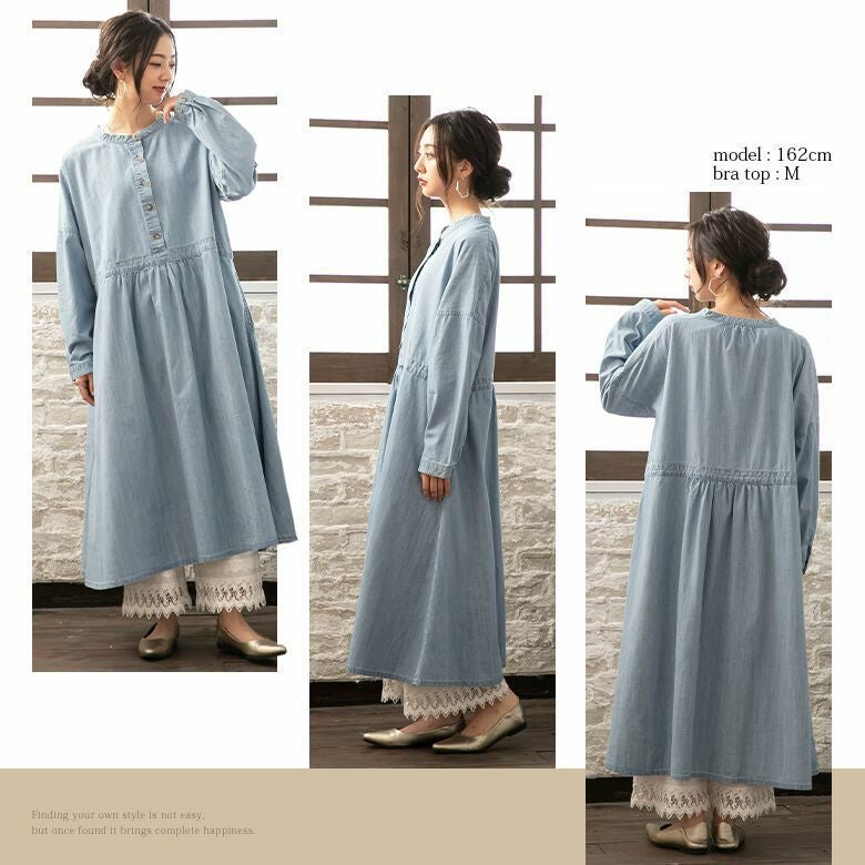 お洒落に差がつくデニム風ワンピースのレイヤードスタイル♪