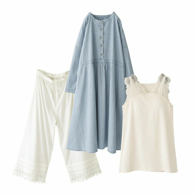 チラリと覗く繊細なレースが女性らしさを惹き立てる、3点コーディネートSET。