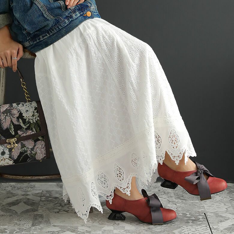 2.コットンレースパッチワークスカート