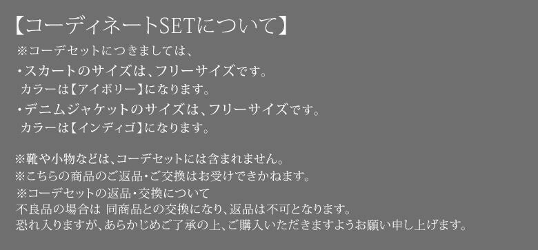 ※コーデセットの返品・交換について。不良品の場合は同商品との交換となり、返品は不可となります。恐れ入りますが、予めご了承の上、ご購入いただけますよう宜しくお願い申し上げます。
