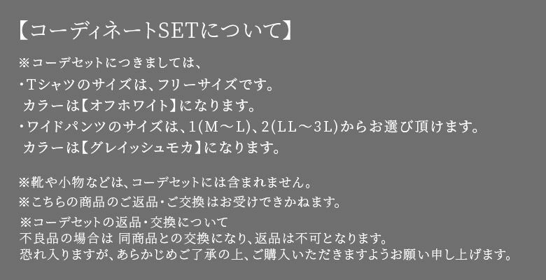 ※コーデセットの返品・交換について。不良品の場合は同商品との交換となり、返品は不可となります。恐れ入りますが、予めご了承の上、ご購入いただけますよう宜しくお願い申し上げます。