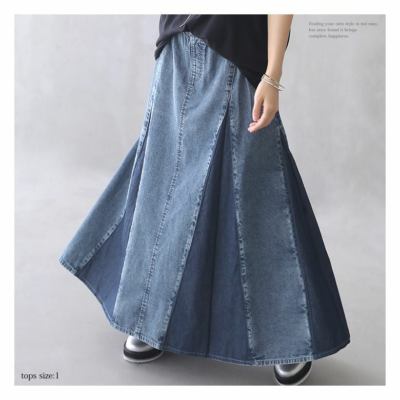 2.パネル切替デニムフレアスカート