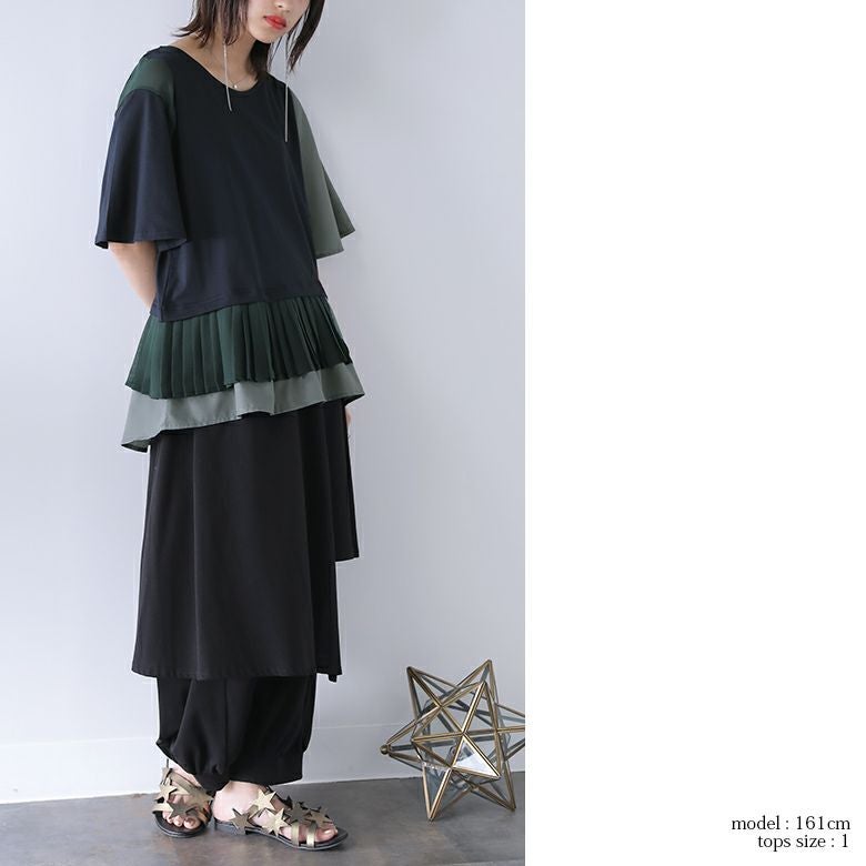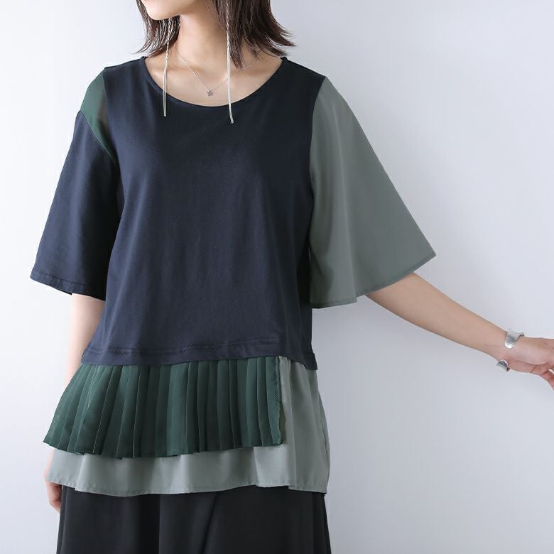 1.シフォン×プリーツ配色カットソー