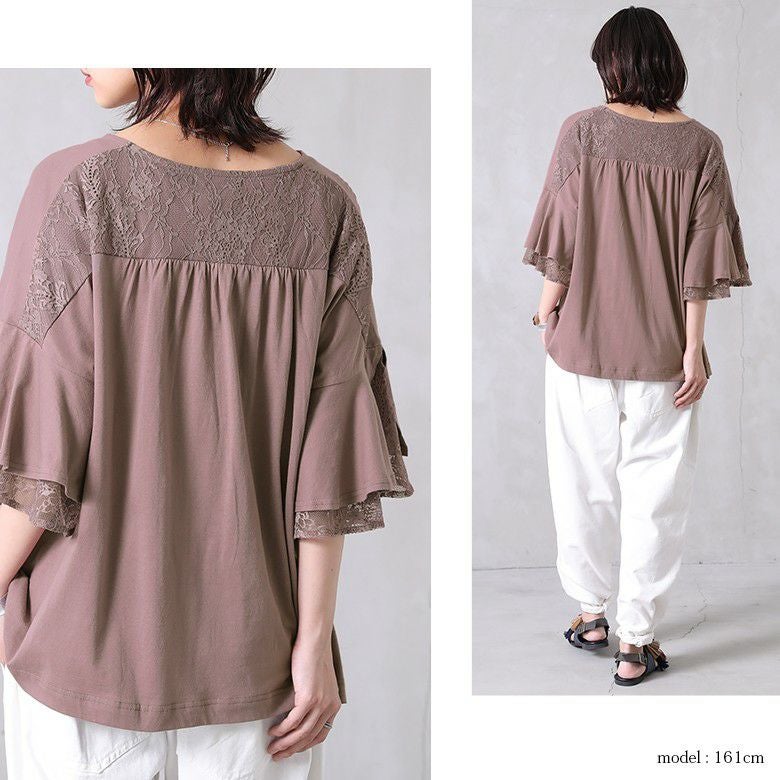 1.繊細レース×フレアスリーブカットソー