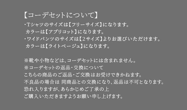 ※コーデセットの返品・交換について。不良品の場合は同商品との交換となり、返品は不可となります。恐れ入りますが、予めご了承の上、ご購入いただけますよう宜しくお願い申し上げます。