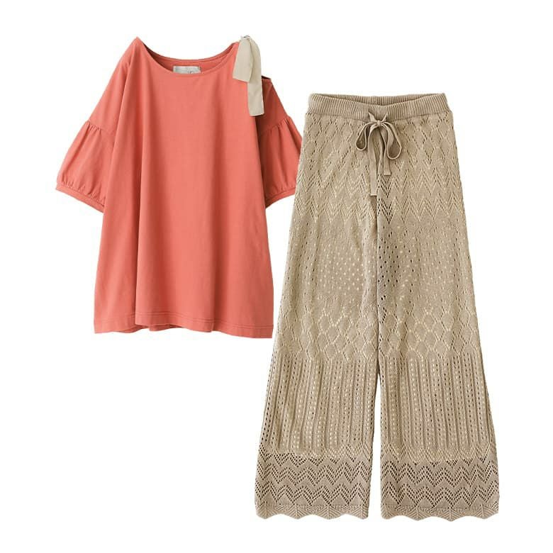 甘くなりすぎないきれいめな印象になる、2点コーディネートSET。