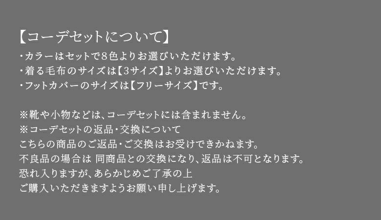 ※コーデセットの返品・交換について。不良品の場合は同商品との交換となり、返品は不可となります。恐れ入りますが、予めご了承の上、ご購入いただけますよう宜しくお願い申し上げます。