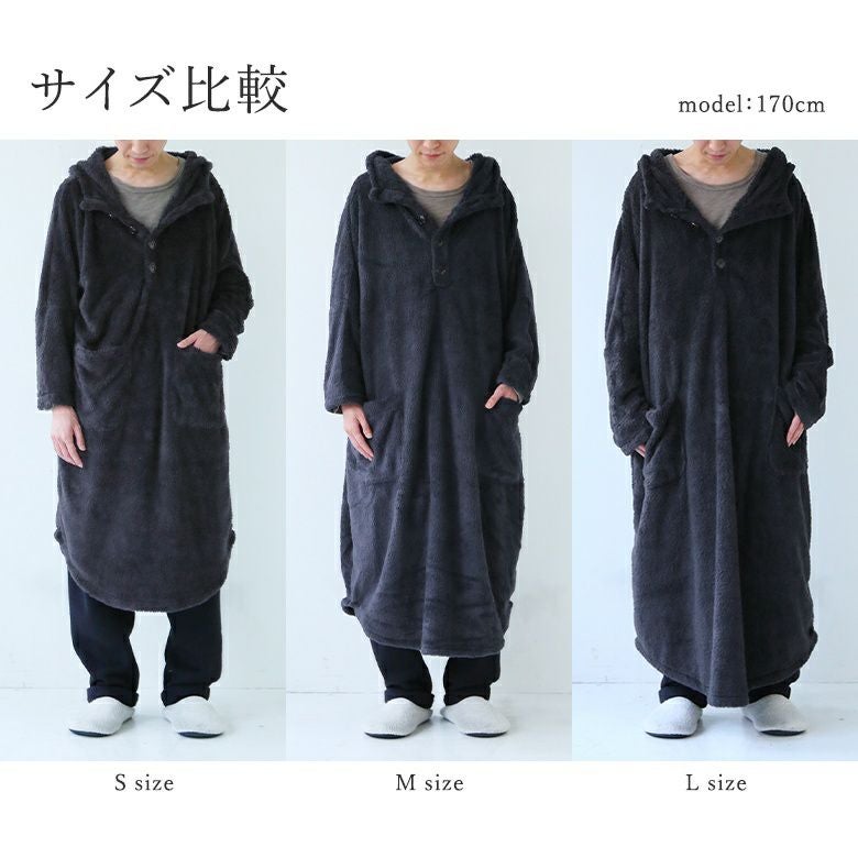普段Lサイズ着用。 前回購入の別タイプの着る毛布のMサイズでは大きく、屈むと裾を踏みそうな時があったので今回はSサイズを買ってみたところ、ちょうど良いサイズ感でした。 レッドチェック、とても可愛いくてオススメです!