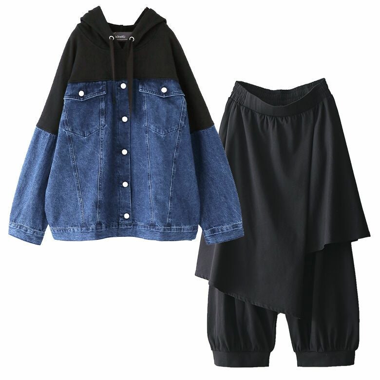送料無料★デニムドッキングトップスが主役の2点コーデSET♪