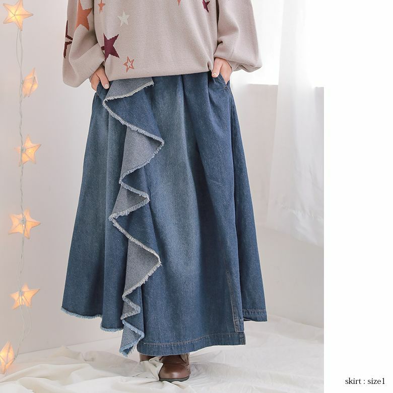 2.アシメフリルデニムスカート