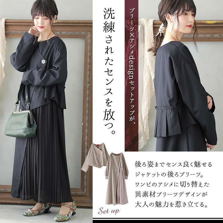 センス良く魅せる≪somari imagination≫プリーツジャケット×ワンピースセットアップです。