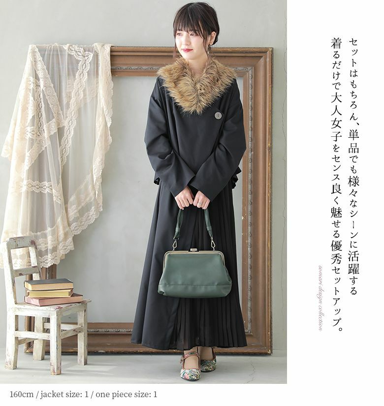 洗練印象ジャケット×ワンピースセットアップ。
