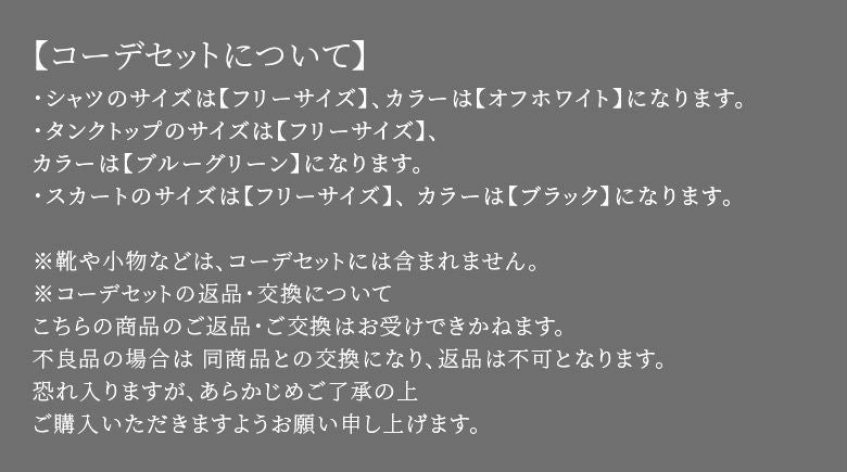 ※コーデセットの返品・交換について。不良品の場合は同商品との交換となり、返品は不可となります。恐れ入りますが、予めご了承の上、ご購入いただけますよう宜しくお願い申し上げます。