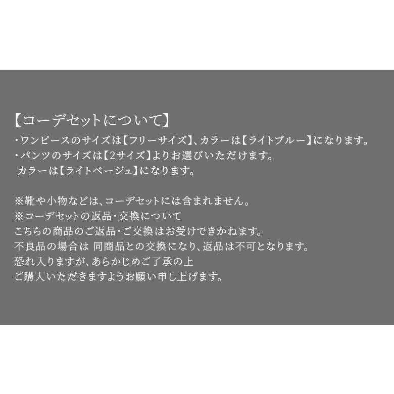 ※コーデセットの返品・交換について。不良品の場合は同商品との交換となり、返品は不可となります。恐れ入りますが、予めご了承の上、ご購入いただけますよう宜しくお願い申し上げます。