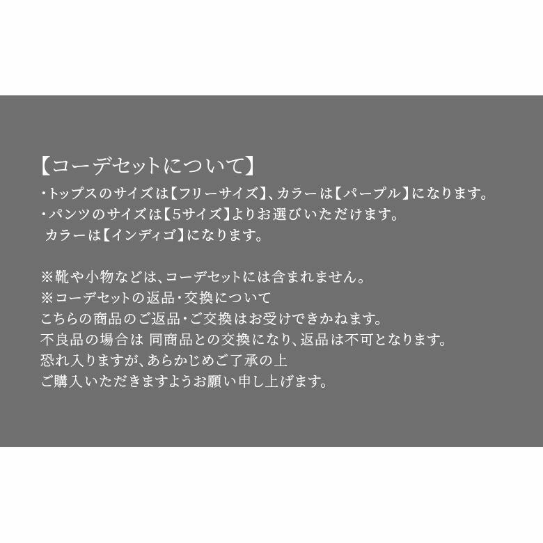 ※コーデセットの返品・交換について。不良品の場合は同商品との交換となり、返品は不可となります。恐れ入りますが、予めご了承の上、ご購入いただけますよう宜しくお願い申し上げます。