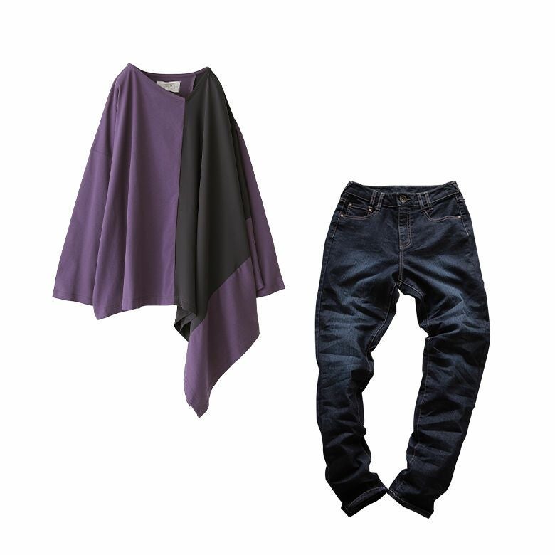 モードな存在感溢れる変形トップス×デニム2点コーデSET♪