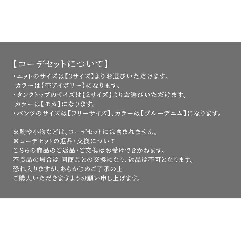 ※コーデセットの返品・交換について。不良品の場合は同商品との交換となり、返品は不可となります。恐れ入りますが、予めご了承の上、ご購入いただけますよう宜しくお願い申し上げます。
