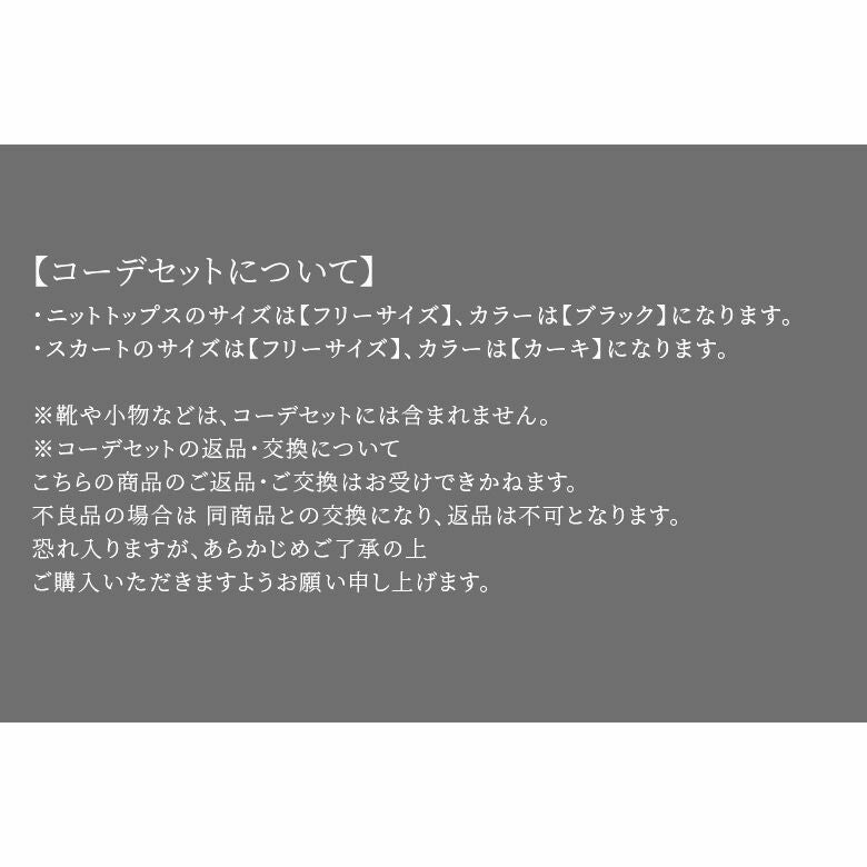 ※コーデセットの返品・交換について。不良品の場合は同商品との交換となり、返品は不可となります。恐れ入りますが、予めご了承の上、ご購入いただけますよう宜しくお願い申し上げます。